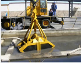 QLYD12HZ型抓斗起重機(jī)廠區(qū)池內(nèi)挖淤泥作業(yè)