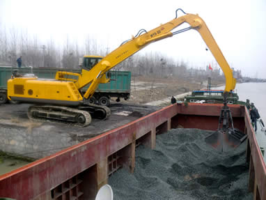 雙動(dòng)力全液壓輪式、履帶式抓料機(jī)(通過(guò)配置不同抓具,可實(shí)現(xiàn)多種作業(yè)功能,一機(jī)多用)可對(duì)廢鋼、礦石、鐵粉、煤碳等小范圍、大批量的泡、松、散、扯、亂類(lèi)物料進(jìn)行快速裝卸、堆垛、喂料作業(yè),憑借安全環(huán)保、節(jié)能省錢(qián)的顯著優(yōu)勢(shì),與現(xiàn)代眾多港口集團(tuán)“低碳高效”的港口方針相得益彰,迅速占領(lǐng)各大港口碼頭市場(chǎng),并擔(dān)當(dāng)作業(yè)主力。